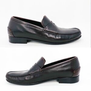 Ferragamo Ayden Penny Loafer Brown Leather Vibram Neolithic Size 7.5 EE **Wide**