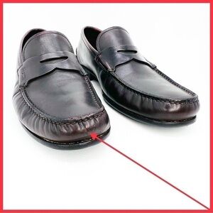 Condition: Good pre-owned (on a scale of poor/fair/good/very good/excellent/pristine - I’m a tough grader!) | Minor scuff on right toe and inside edge of penny strap, smooth wear on inside of heels, and moderate wear on outsoles (see red framed images for reference) | No stretching or misshapenness | Very clean - inside and out