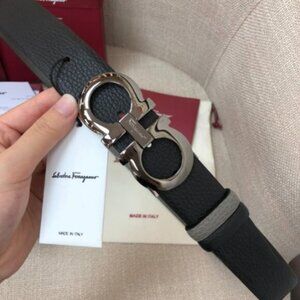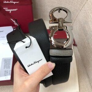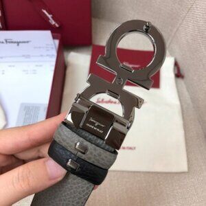 Ferragamo Black Leather with Metallic Gancini