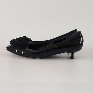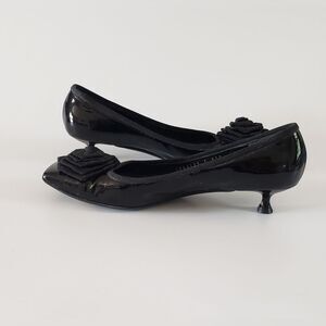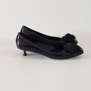 Ferragamo Black Patent Leather Square Toe Mod style Kitten Heel Size 6.5