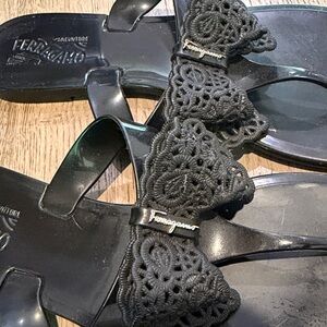 Ferragamo Black Women's Sandals with Butterfly Detail