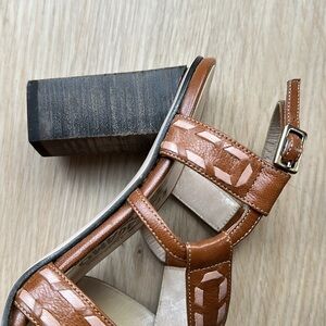 Ferragamo Cognac Block Heel Sandals w/Contrast Stitch Detail - Size 6.5 (EUC)