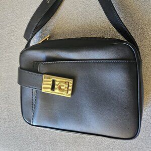 Ferragamo Gancini-buckle leather crossbody bag. Made in Italy.