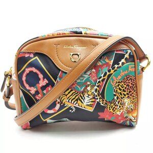 This is a beautiful Ferragamo crossbody bag, with animal (Tigers) and flowers. The bag is in excellent condition. Please see pictures for more details.