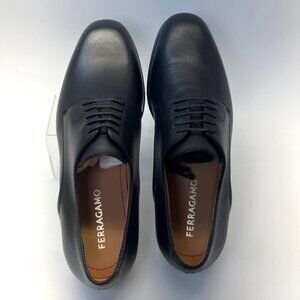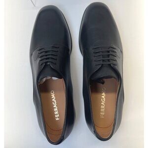 Ferragamo Fosco Men Leather Shoes Black Derby Oxfords Size 9.5