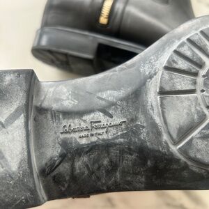 Ferragamo Gancini Black Leather Moto Ankle Boots 38.5 B