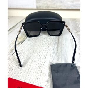 Ferragamo Gancini Women’s SF1041S Black Gold Chain Square Metal Sunglasses NWT