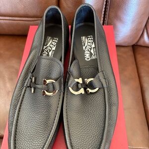 Ferragamo Grandioso Gancini Black Leather Loafers Size 8.5 Free Shipping