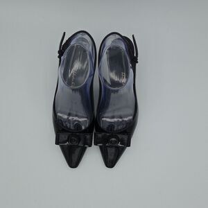 Ferragamo Karine Slingback Black Kitten Heel Patent Leather Bow Womens Sz 7 EUC