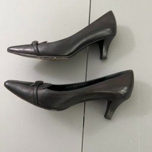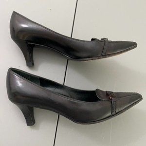 Ferragamo Kitten Heel Pumps Size 7 Black with Metallic Sheen