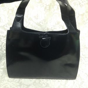 Ferragamo Large Black Enamel Patent Tote- Handbag