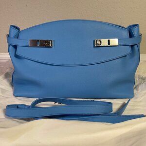 Ferragamo Large Hug Soft Crossbody Bag in Azur (bright blue), silver hardware