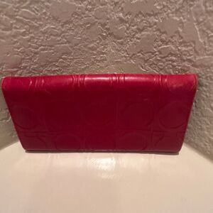 Ferragamo Long Wallet Red Gancini Embossed Logo Leather Travel Organization Bold