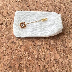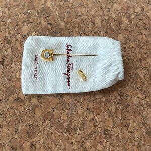 Ferragamo Men 2pc Gancini Gold Tone Crystal Lapel Scarf Tie Stick Pin NWOT
