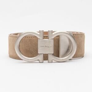Ferragamo Men Double Gancini Suede Belt 34 inch