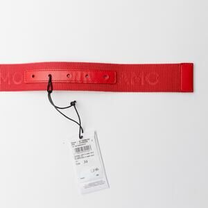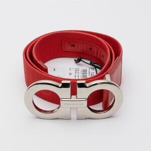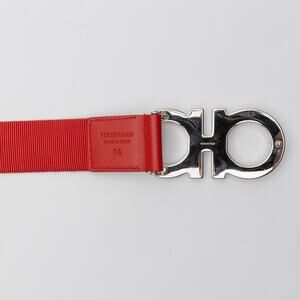 Ferragamo Men Double Gancini Webbed Fabric Belt Red/Silver