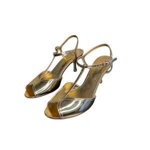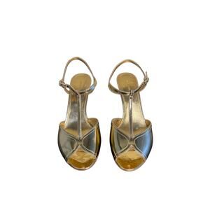 Ferragamo NIB Ely Metallic Leather Sandals in Gold Size 8.5