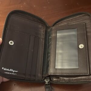 Be ready for adventure with this Ferragamo wallet. Zips around, can fit a passport book inside, lots of slots. Lambskin interior, nylon exterior