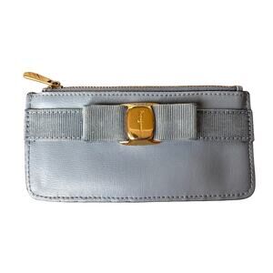 Ferragamo Powder Blue Bow Zippered Pouch Card Holder