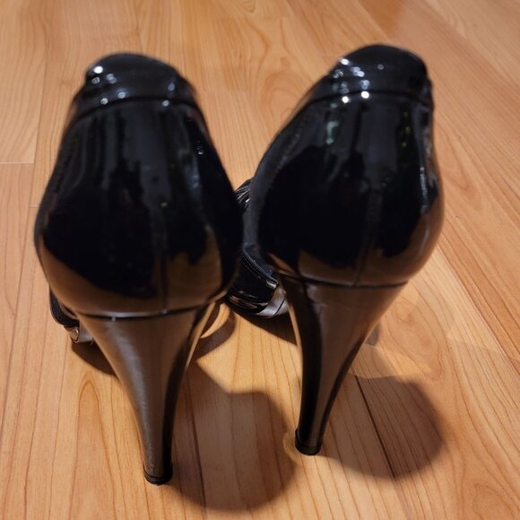 Size 10.5 B 8cm Heel 1 cm Platform Black Patent Leather and Suede D'Orsay