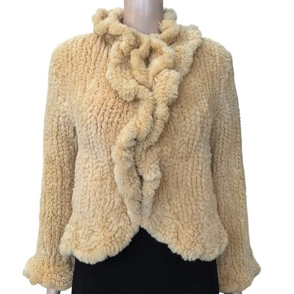 -Authentic Ferragamo Shearling Ruffle Jacket