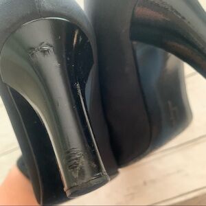 Ferragamo Shoe String Bow Pumps Black Heels Size 8 Vintage Round Toe