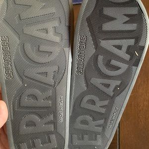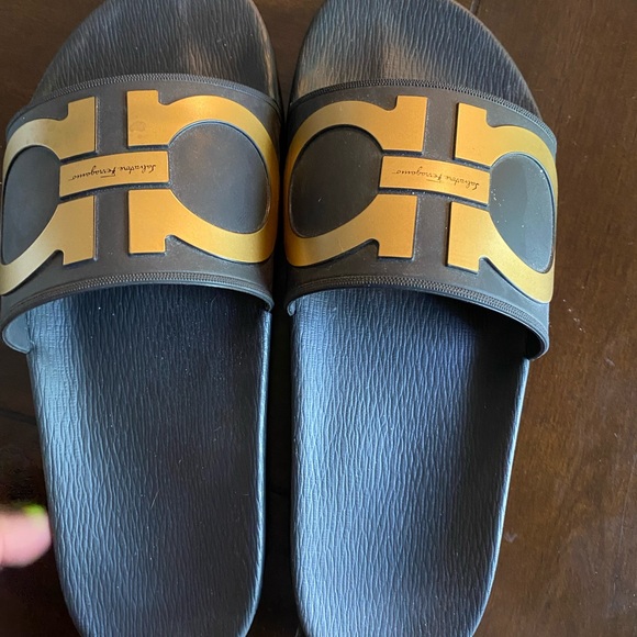 Black/gold slides. Do not have the box but they are authentic. Worn a handful of times in the house. These are a MENS size 9