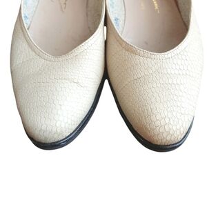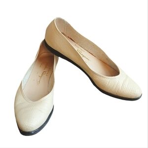 Ferragamo Snake Embossed Cream Leather Flats Size 8.5