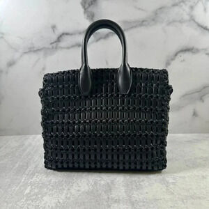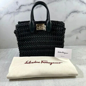 Elevate your ensemble with the timeless elegance of the Ferragamo Studio Woven Leather Bag. Crafted from luxurious woven leather and raffia, this bag offers both versatility and durability, making it an essential accessory for any occasion.