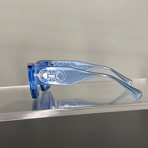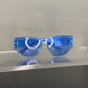 Transparent light blue/Azure plastic sunglasses comes with case and original box