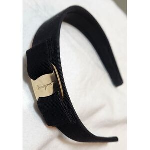 Ferragamo Vara Black Grosgrain Headband with Bow and Logo Hardware