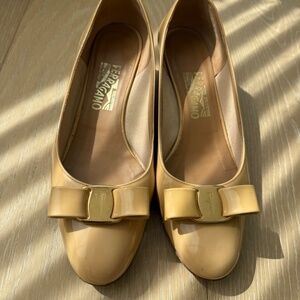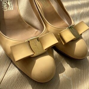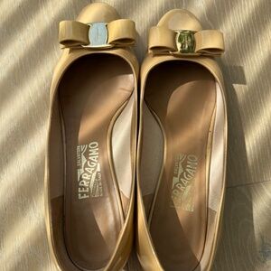Ferragamo Vara Patent Leather Cream / Taupe Pumps