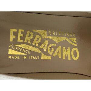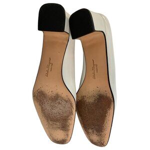 Ferragamo White Beige Leather Heels Low Chunky 1.5" Heel Italy Size 6AA I10067