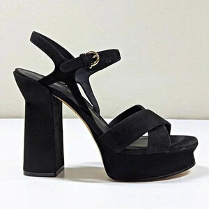 Ferragamo Women's Sonya Black Suede Ankle Strap Platform Sandals Size 8 C