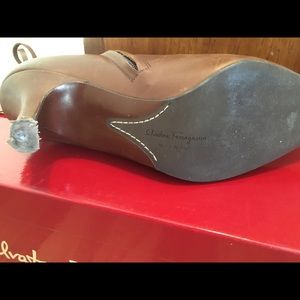 Women's Salvatore Ferragamo ankle boots, the same as the black that I'm selling, but as you can see from the wear on the heels, I wore them more, same luxurious leather, but there are scuff marks and need lifts, also a piece of leather is pushed up on one heel, all fixable by a good cobbler, the soles are perfect. I'm selling these for less than the black