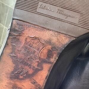 Vintage 1980s Ferragamo Black leather knee-high boots
