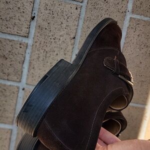 Ferragamo brown suede side buckle shoes 9.5