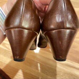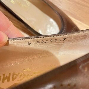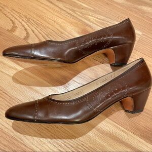 Ferragamo classic cap toe pumps brown leather size 9 AAAA extra narrow