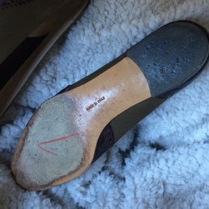 Italian made Ferragamo loafers. Textured leather in toes and heals with suede insert. Tops are I new condition. Some bottom wear