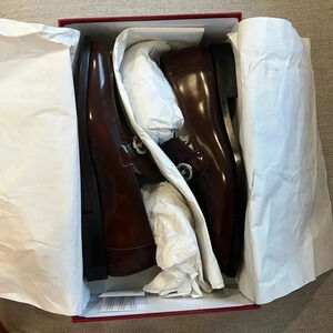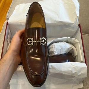 Ferragamo men’s gustav gancini bit leather loafers brown