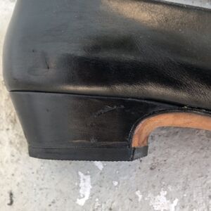 Super cute n comfortable, check out the pictures. Outside right heel has a scuff. 1” heel