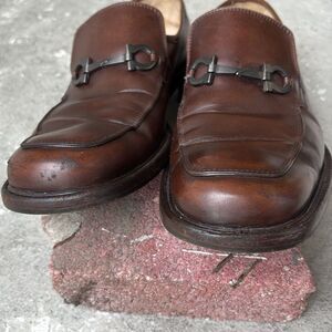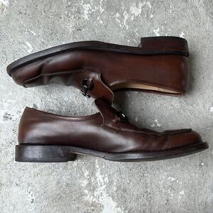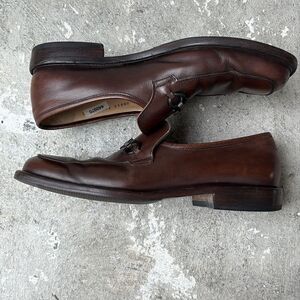 Please look at the pictures. These shoes are good, but not perfect. The right shoe has scuffing. Also, they need a professional polish. They have been resoled and re-heeled