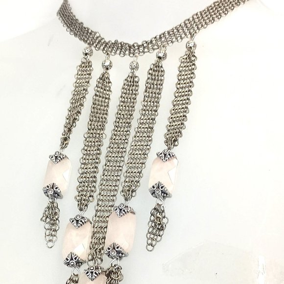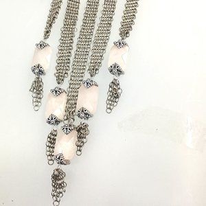 Ferrara Whiting and Davis Ring Mesh Choker with 5 Rose Quartz Pendants