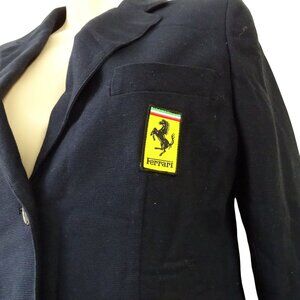 Ferrari Logo Patch Navy Blue Blazer Jacket Women Size 42 S Cotton Made in Italy