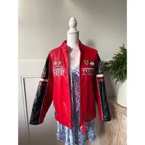 Faux leather red racing jacket. Not a vintage brand, but still cool!