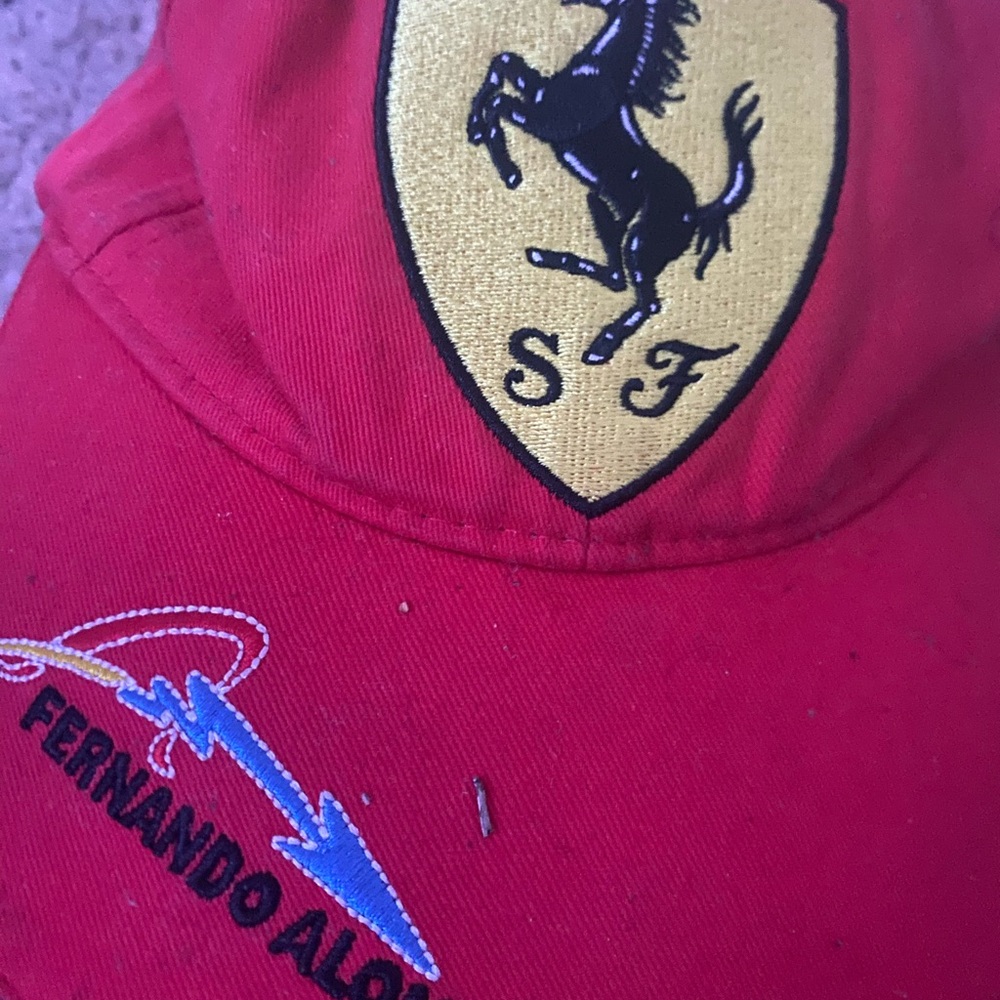 Stylish red cap featuring the iconic Ferrari logo. Perfect for fans and collectors.