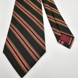 Ferrell Reed for Hallidays Repp Striped Tie Mens Silk Green Red USA 57.5"