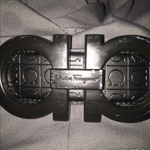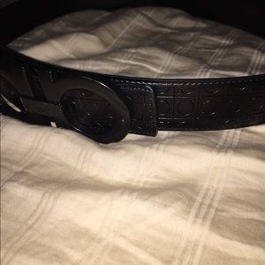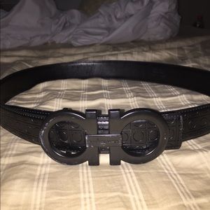 All black ferrigamo belt with design on leather, 100% authentic slight scratches