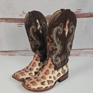 Ferrini Stingray Women's Cowboy Boot. Brown giraffe print leather, square toe. Very good preowned condition, Size: 7B