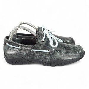 Ferrini Smoky Black Microsuede Moc Toe Leather Loafers Women's 8.5B 65322-49